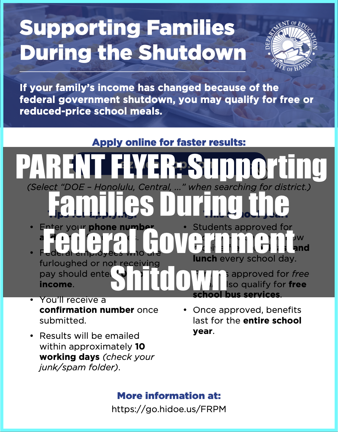 Supporting Families During the Fed. Gov. Shutdown *See flyer for details. Attached Files Flyer-Supporting Families During the Shutdown.pdf